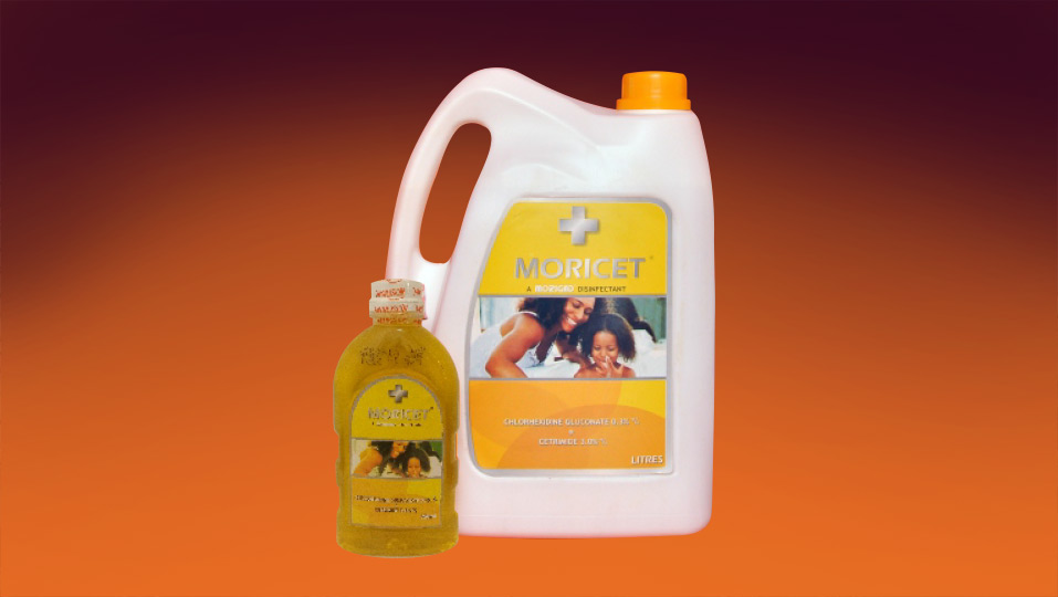 Moricet is an excellent multipurpose antiseptic disinfectant liquid. It is both effective and gentle on babies’ and adults’ skin. It is effective in maintaining daily personal hygiene, for first aid use, midwifery, baby nappy rash, dandruff, seborrhoeic dermatitis and helps prevent infections arising from minor cuts and bruises. It is also used in disinfecting surfaces and equipment both at home and at the hospital. Available in 125ml, 250ml, and 4L pack sizes.
